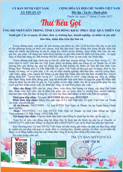 17:29 12/12/2025Ngày 12/12, Ủy ban nhân dân xã Thuận An tổ chức Lễ công bố Quyết định thành lập Trung tâm Dịch vụ tổng hợp xã và các quyết định về công tác cán bộ. Tham dự có các đồng chí: Lê Văn Hoàng – Bí thư Đảng ủy, Chủ tịch hội đồng nhân dân xã, Nguyễn Tiến Phúc, Phó bí thư thường trực Đảng ủy, Phan Bá Tịnh, Phó bí thư, Chủ tịch Ủy ban nhân dân xã.