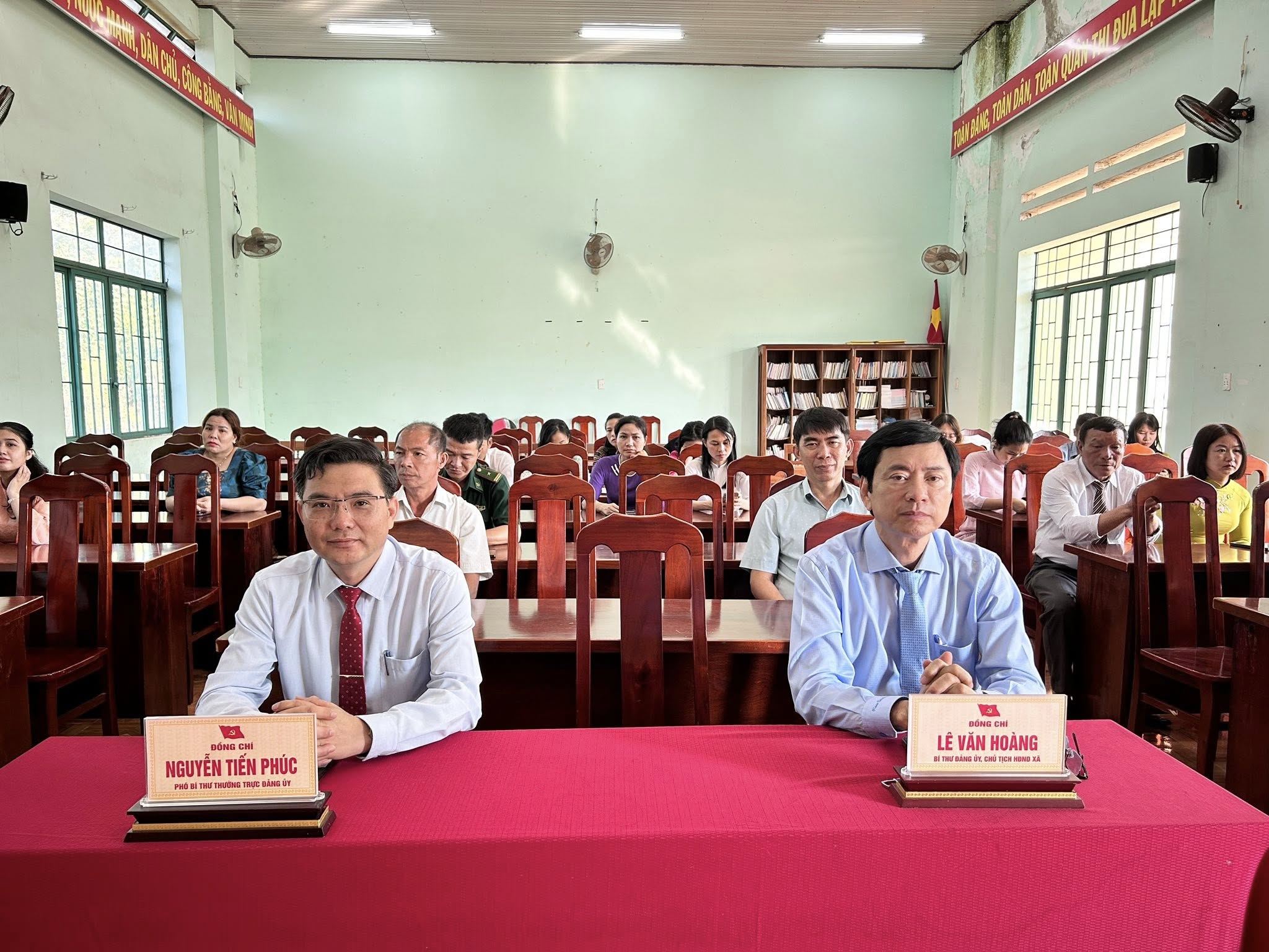 Tham dự buổi lễ có đồng chí Lê Văn Hoàng - Bí thư Đảng uỷ, Chủ tịch HĐND xã; đồng chí Nguyễn Tiến Phúc – Phó Bí thư Thường trực Đảng uỷ, cùng toàn thể cán bộ, công chức, người lao động thuộc các cơ quan tham mưu giúp việc Đảng ủy, Ủy ban MTTQ Việt Nam xã và các tổ chức chính trị - xã hội trên địa bàn.