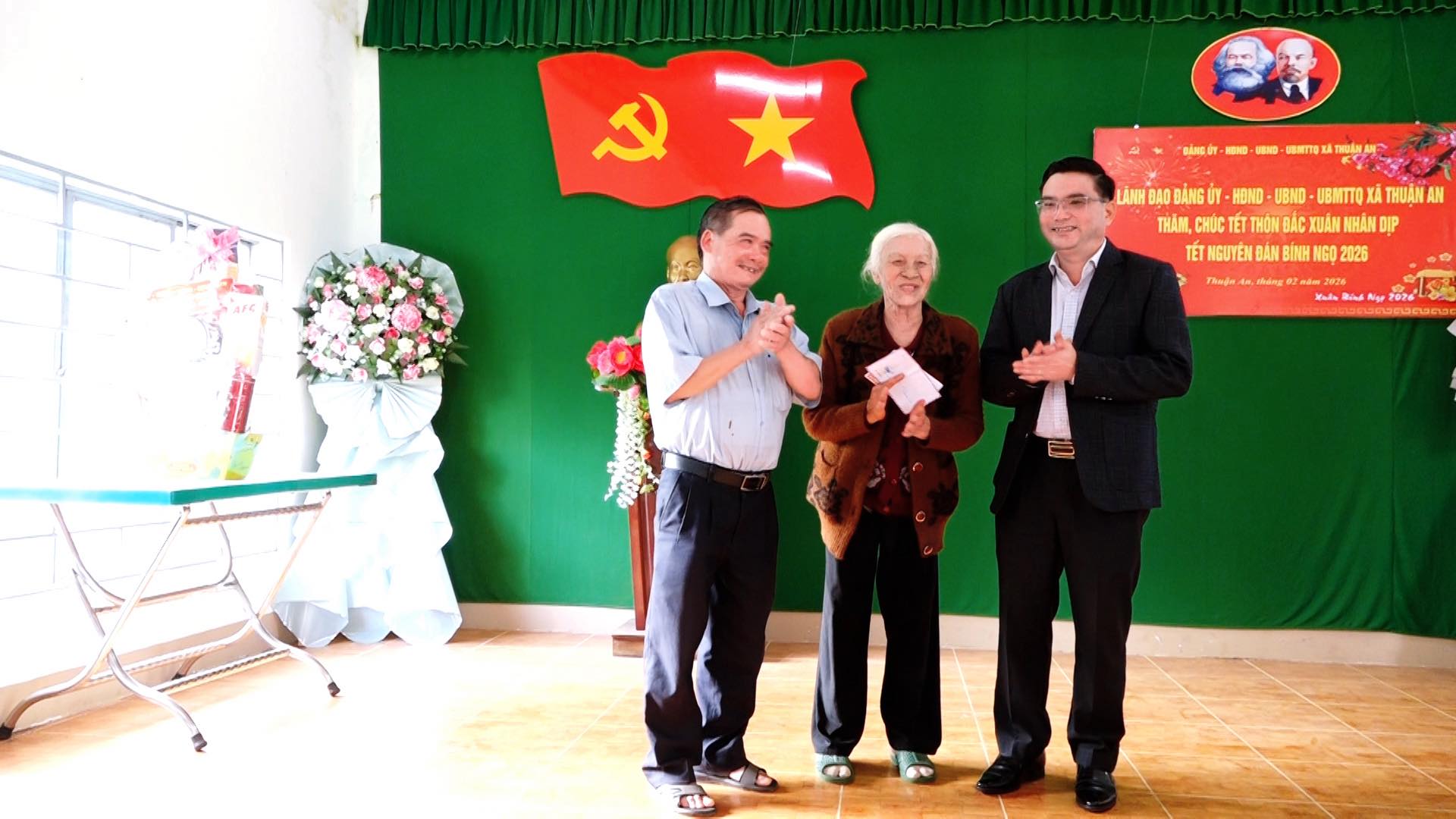 Nhân dịp Tết Nguyên đán Bính Ngọ năm 2026, ngày 04/02/2026, Đoàn lãnh đạo xã Thuận An do đồng chí Nguyễn Tiến Phúc – Phó Bí thư Thường trực Đảng ủy xã làm Trưởng đoàn đã tổ chức thăm hỏi, chúc Tết và trao quà cho các đối tượng chính sách, hộ nghèo, hộ có hoàn cảnh đặc biệt khó khăn, người khuyết tật tại thôn Đắc Xuân, xã Thuận An. Tham gia Đoàn có bà Nguyễn Thúy Luân – Ủy viên Ban Thường vụ Đảng ủy, Chủ tịch Ủy ban Mặt trận Tổ quốc Việt Nam xã, cùng đại diện các ban, ngành, đoàn thể của xã.
