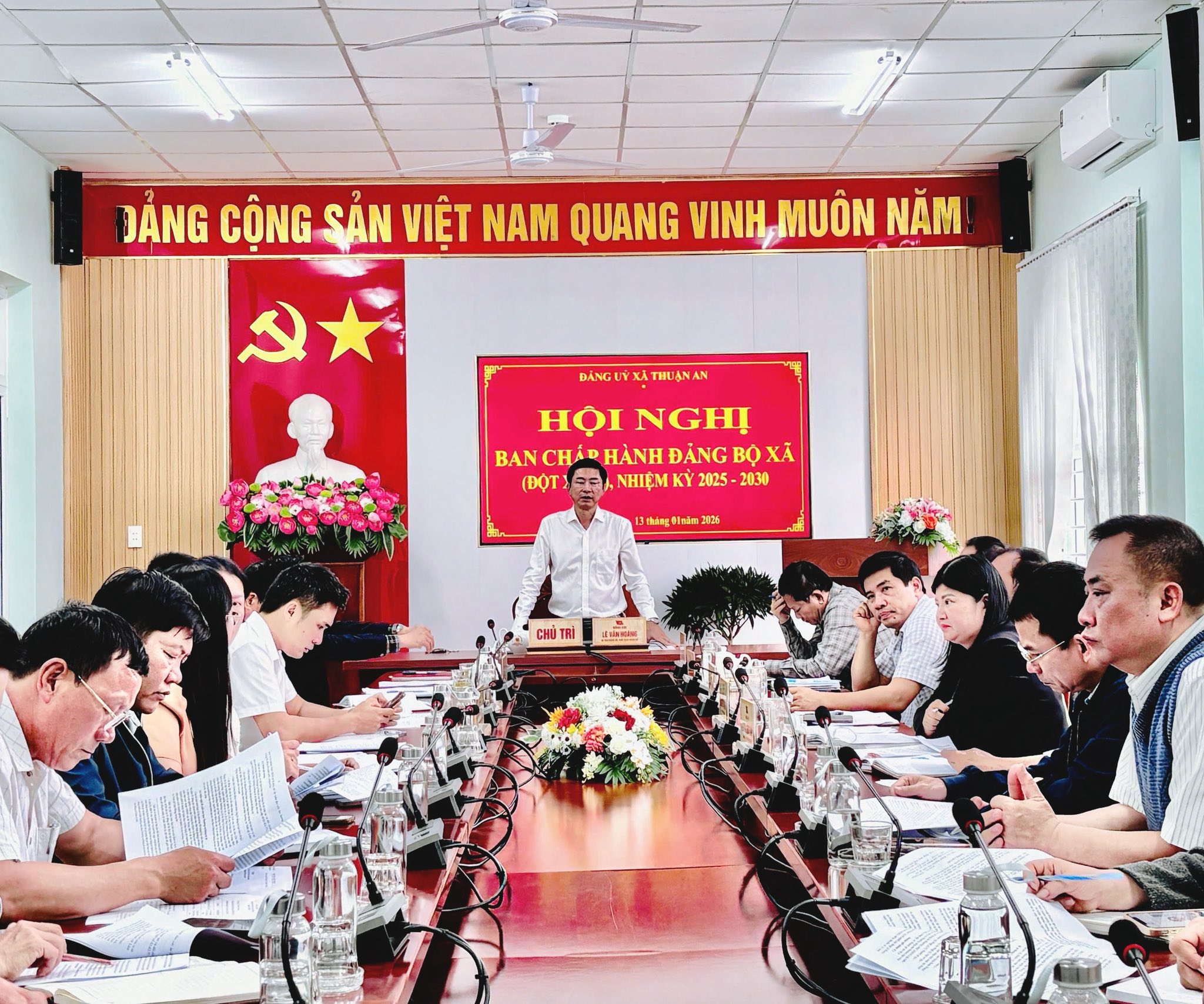 Chiều 13-1-2026, Ban Chấp hành Đảng bộ xã Thuận An tổ chức Hội nghị đột xuất nhiệm kỳ 2025–2030 nhằm xem xét, cho ý kiến một số nội dung quan trọng về công tác tổ chức và y tế cơ sở. Đồng chí Lê Văn Hoàng, Bí thư Đảng ủy, Chủ tịch HĐND xã chủ trì hội nghị.