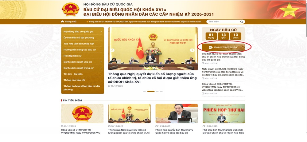 Bước 2: Kích vào biểu tượng ỨNG CỬ TRỰC TUYẾN (vị trí được khoanh vòng màu đỏ trong hình dưới)