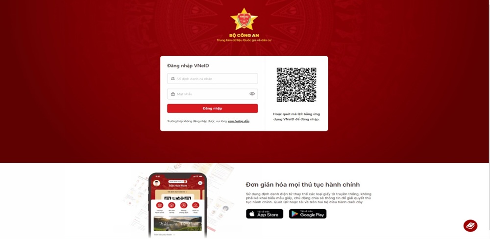 Bước 3: Đăng nhập bằng tài khoản VneID: nhập số căn cước công dân, mật khẩu, mã OTP gửi về số điện thoại đăng ký VneID. Hoặc sử dụng mã quét trên ứng dụng VneID để quét mã QR đăng nhập.