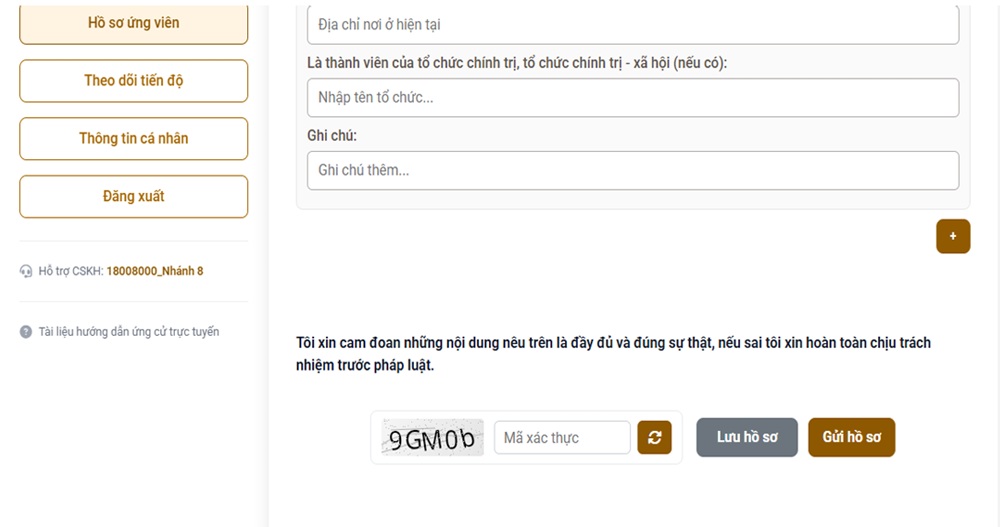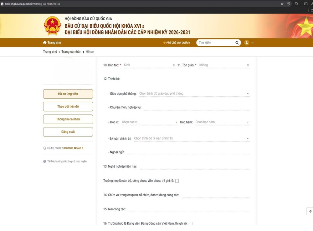 Sau khi ấn “Gửi hồ sơ”, cá nhân ứng cử có thể theo dõi tiến độ hồ sơ, thông tin cá nhân trực tiếp tại trang web https://hoidongbaucu.quochoi.vn