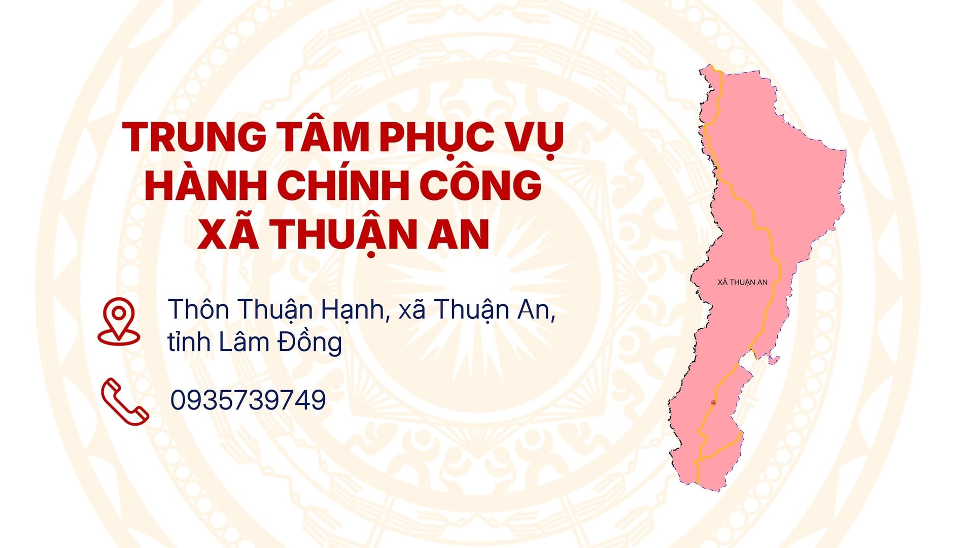 plus-circle Created with Sketch Beta. Aa Giới thiệuLịch sử Lịch sử về xã Thuận An 01/10/2025 16:55 |   27 Your browser does not support the audio element. Thành lập trên cơ sở sắp xếp các xã: Đắk Lao, Thuận An. Trung tâm Phục vụ hành chính công đặt tại địa chỉ: Thôn Thuận Hạnh, xã Thuận An, tỉnh Lâm Đồng. Số điện thoại: 0935739749