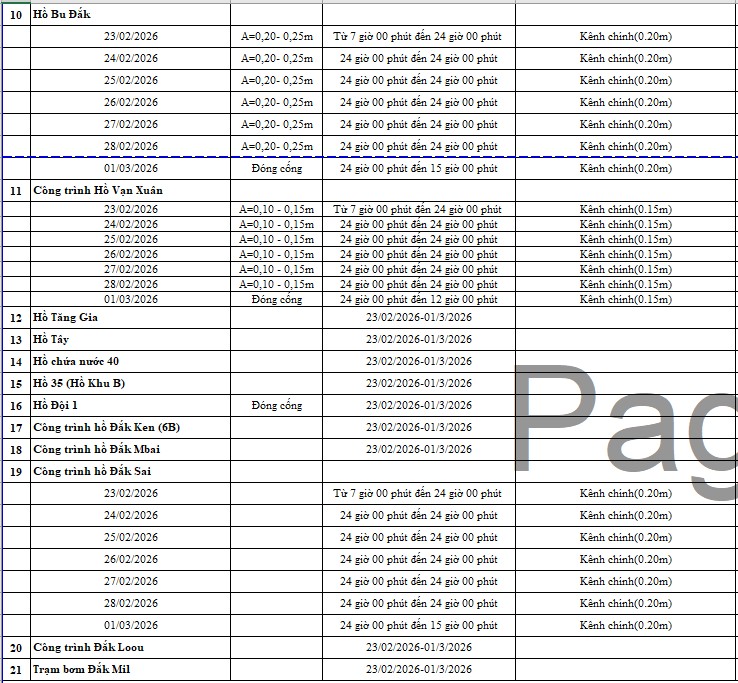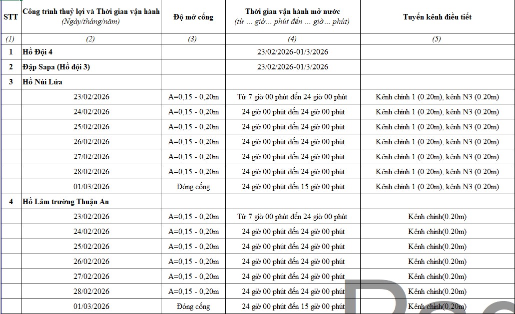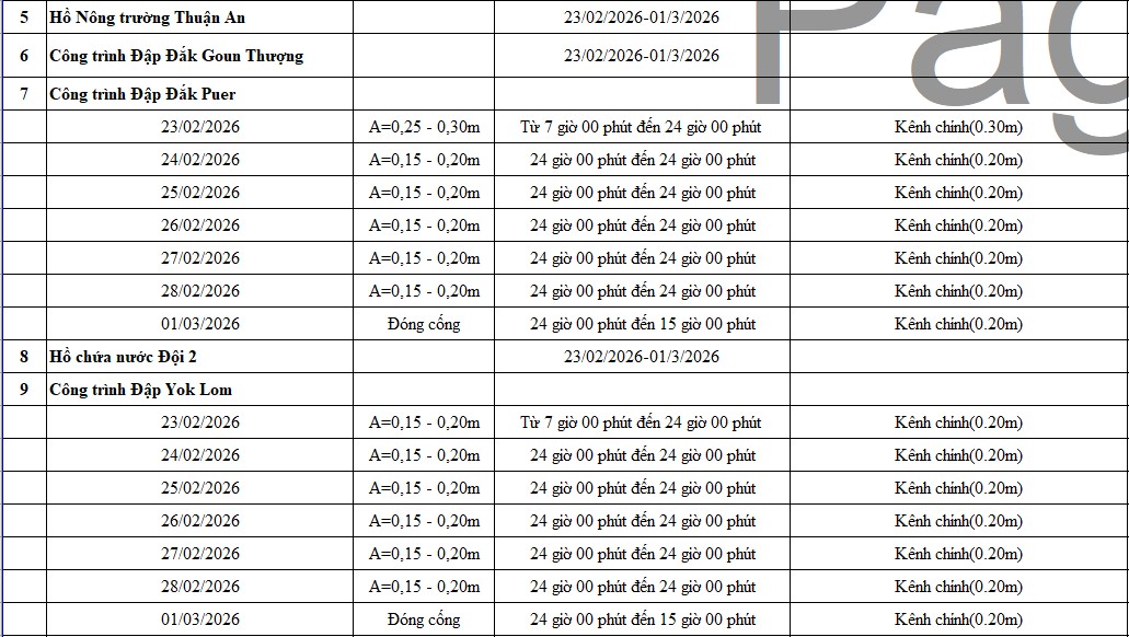 Thông báo lịch vận hành, điều tiết các công trình thủy lợi phục vụ sản xuất tại các công trình thủy lợi trên địa bàn xã Thuận An (từ 23/02/2026 đến 01/03/2026)